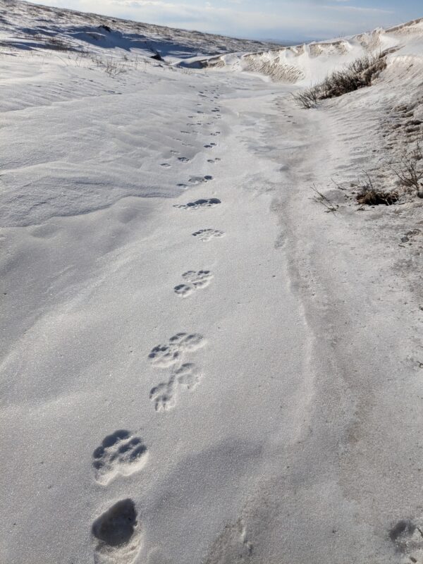 とことこ歩いた跡が小さな間隔で残っており、肉球の形もはっきり。これは間違いありません。